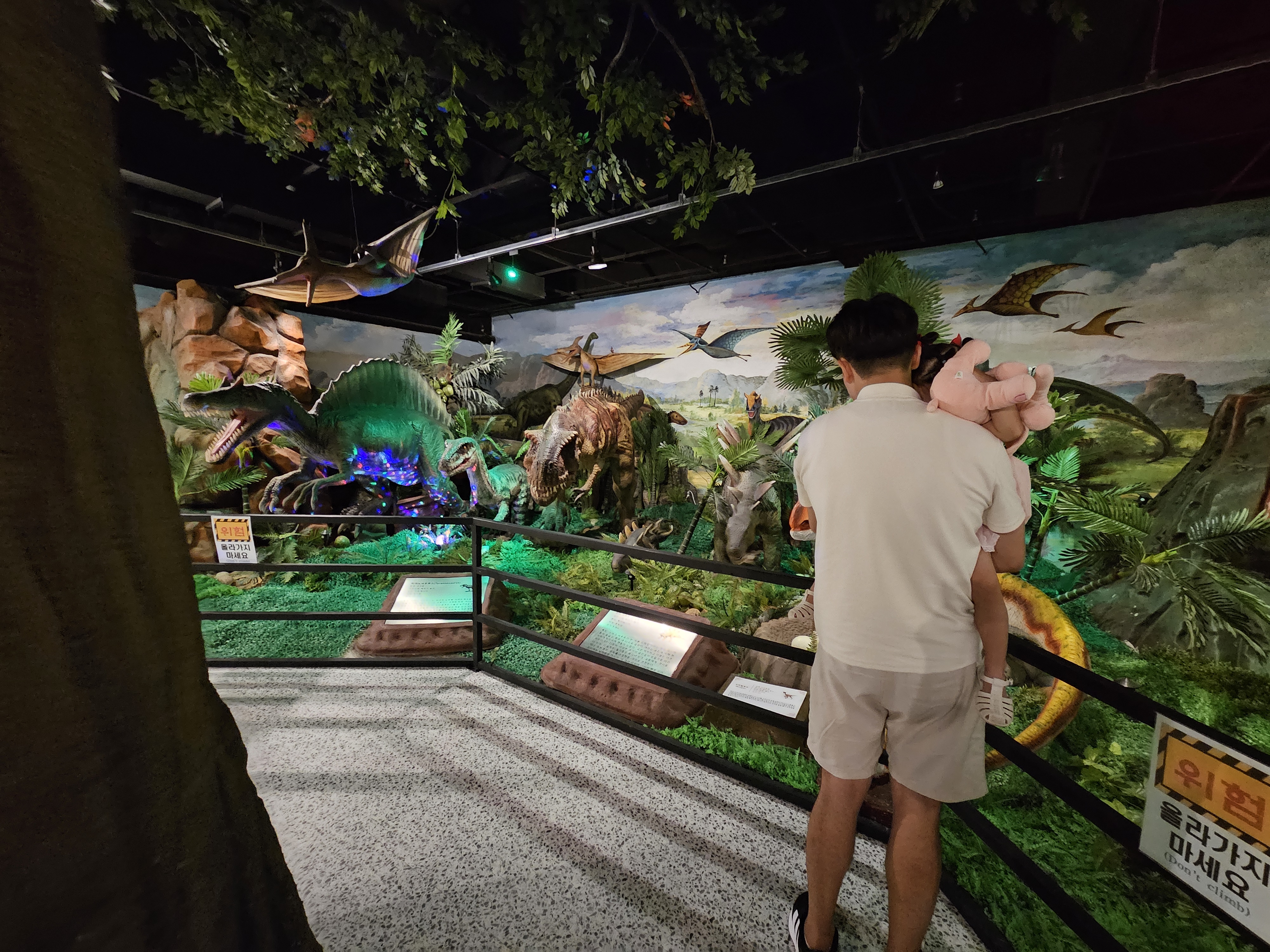 입구부터 공룡이 많아서 아기가 기겁
