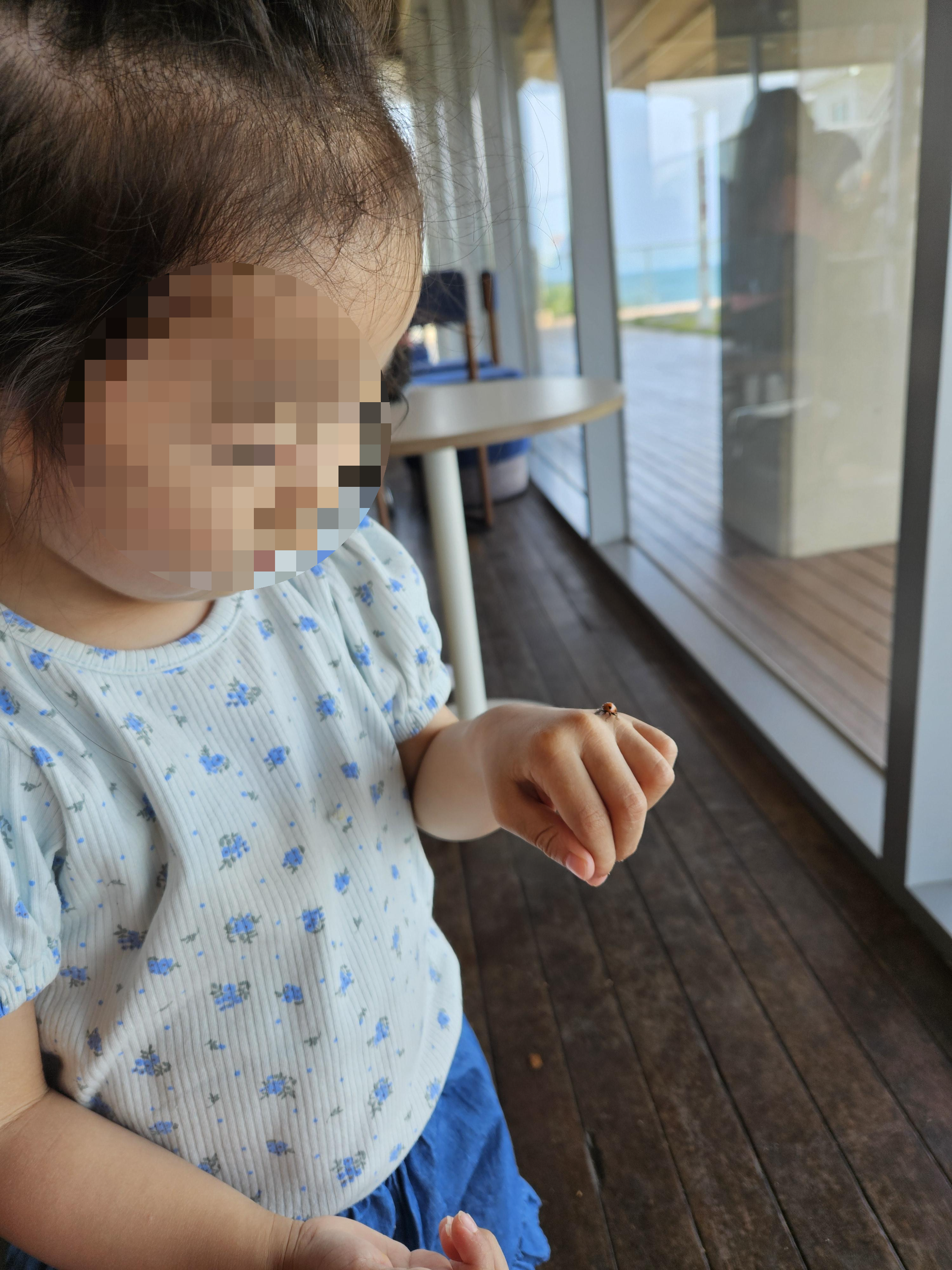 자리에 앉아 있는데 무당벌레를 발견해